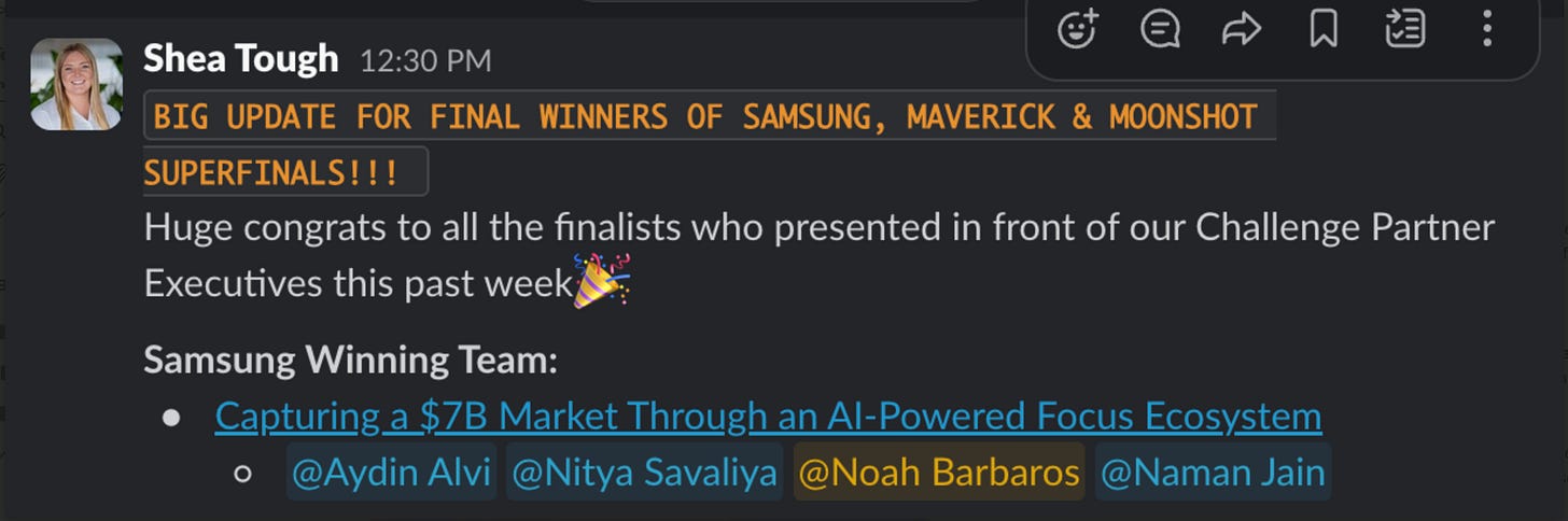 At that time I was pitching a project to Samsung in a competition with TKS. My team competed against 1,000+ participants to rethink how Samsung could use AI to make accessibility more inclusive.