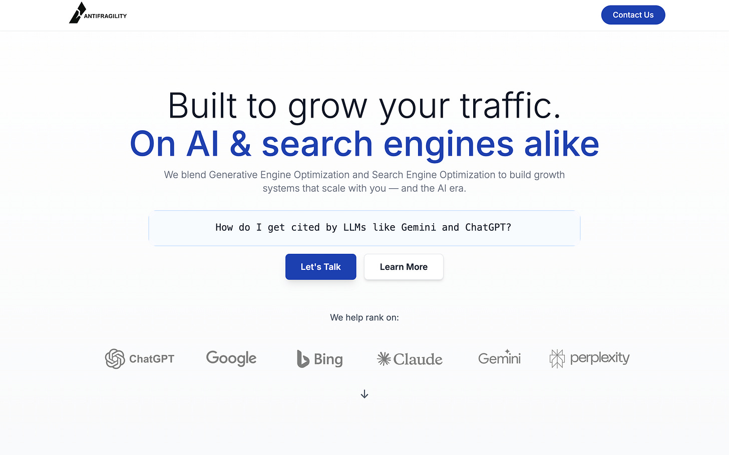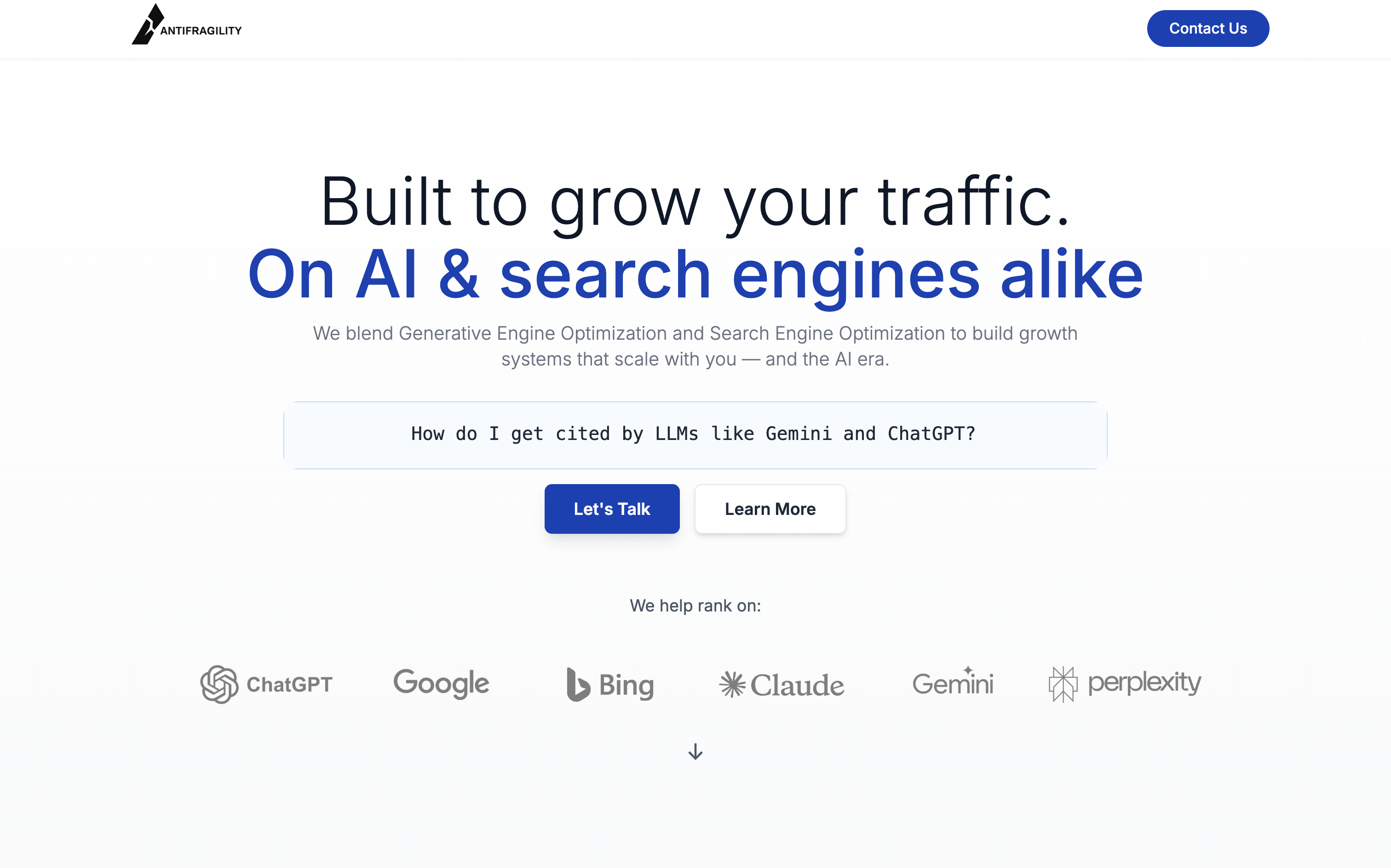 My thesis for Antifragility Labs is working out great right now. The tl;dr: there’s a massive bubble in GEO, and the market is incredibly volatile. I think it’s too early to bet on singular software solutions when it’s a cat and mouse game. Which is why we’re a software-first agency — building new tools every week for our clients and adapting quickly. Learning a lot from this and loving it.
